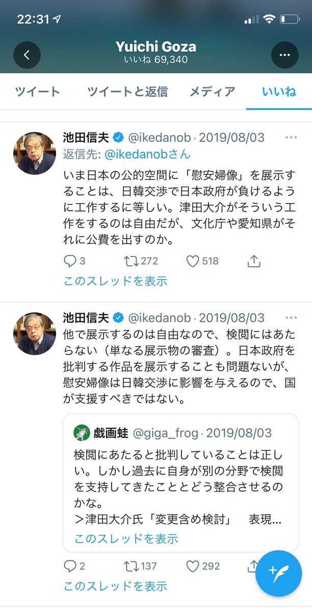 津田大介ツイッター | 津田大介 A Twitter 呉座勇一さんの いいね 欄を3年くらい振り返ってみて あいトリ関連でいいねしていたものを確認してみました いいね はブックマーク目的で使う場合もあるので 必ずしも賛同ということではないのかもしれませんが 一定の傾向は見てとれました