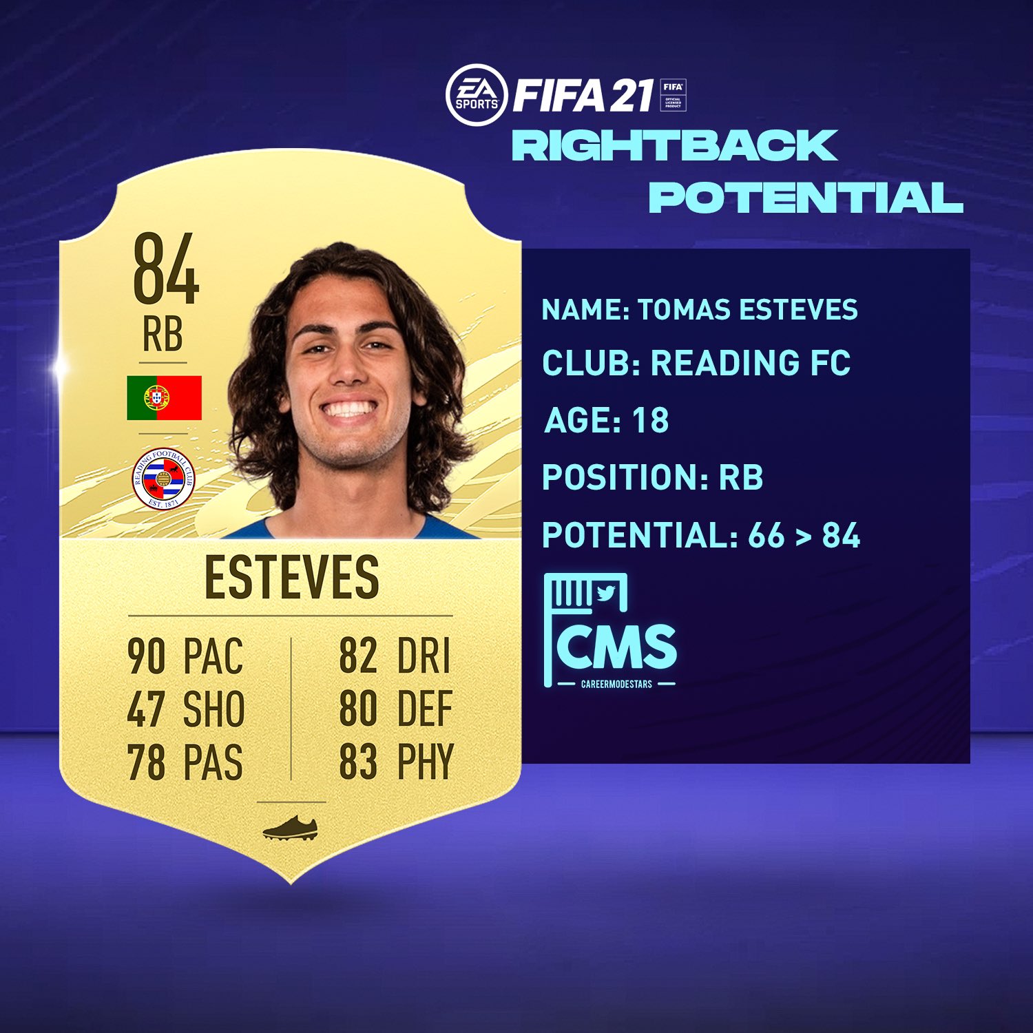 Tomas esteves fifa 21 potential. His FIFA 20 potential is somewhat unfair when he is considered to be one of Portugals best young. 600 mln 3 kwi 2002 w arcos de valdevez portugaliaTomás esteves tomás do lago pontes esteves born 3 april 2002 is a portuguese footballer who plays as a right back for british club reading on loan from fc porto. Tomás Esteves Tomás Lago Pontes Esteves FIFA 21 15 october 2020 - 03042002 18 years - OVR 66 - POTENTIAL 84.